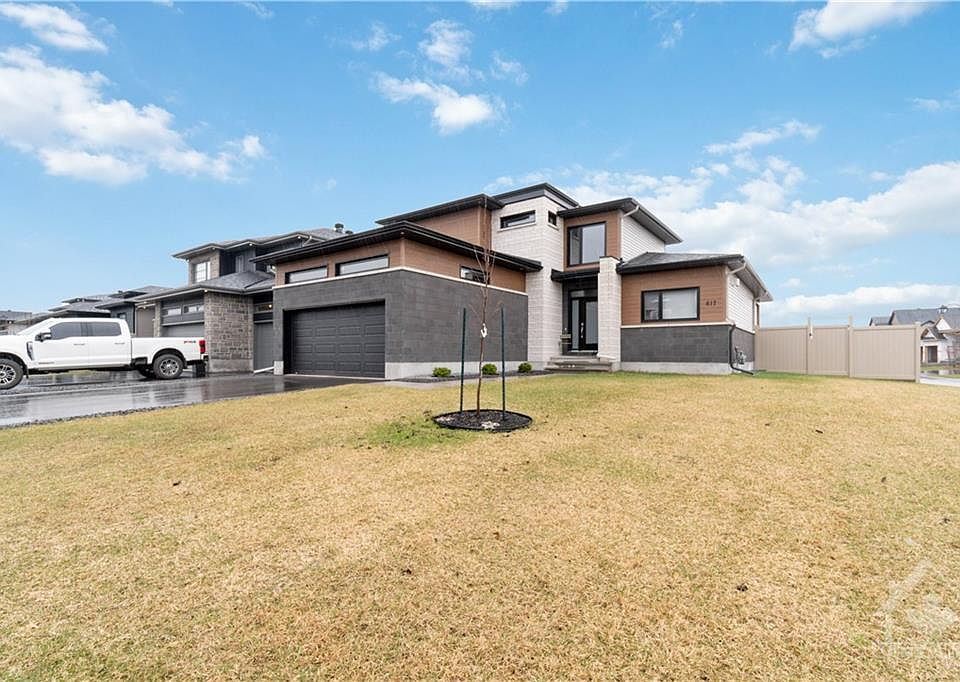 This custom 4bed/2.5bath home on a corner lot blends elegance with modern design. Its faÃA§ade features polished and textured stones, while large windows brighten the 2306sqft interior. Inside, 18†ceilings, hardwood floors, and a gas fireplace with marble-like tile enhance its modern vibe. The kitchen boasts custom cabinetry, a large island, quartz countertops, and high-end SS appliances. The primary suite on the main floor offers a luxury 5pc ensuite with a spa-like tub and glass shower. The hardwood staircase leads to three additional bedrooms and hallway bathroom. Outdoors, a covered deck with BBQ hookup and oversized sliders invites entertaining. Large yard with PVC fence. Architectural details and high-end finishes, including a grand foyer and main-floor laundry and mudroom, make this home a unique find in Rockland's Morris Village, combining style with functionality.