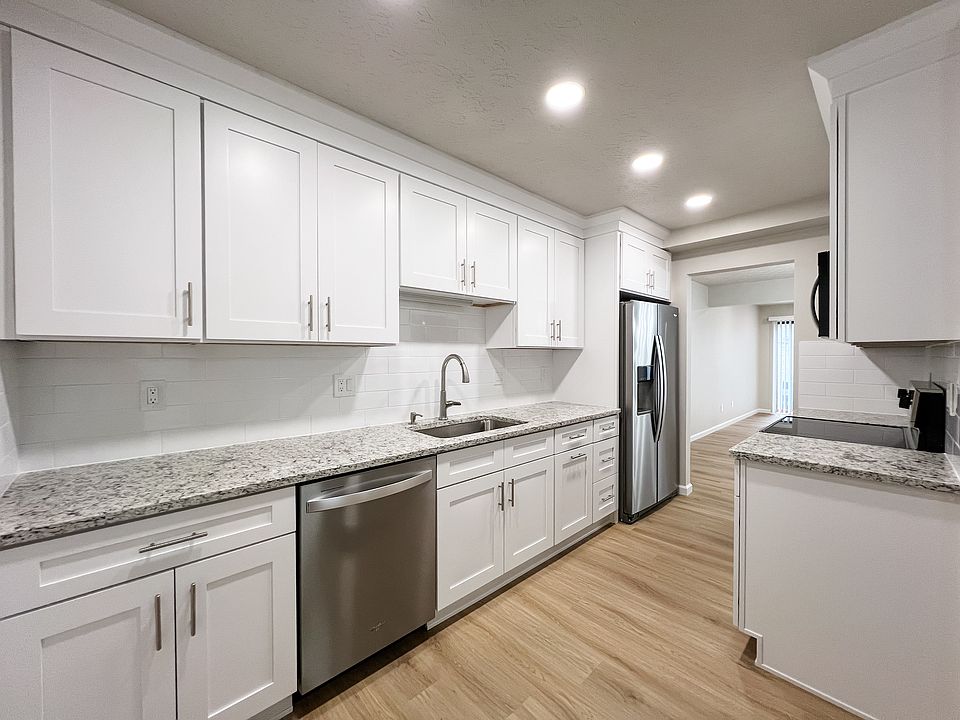 This newly remodeled townhome is a spacious 3-floor unit with attached one-car garage, 3 bedrooms and 2.5 baths. Brand new kitchen - cabinets, granite countertops and all appliances. The main floor has a living room with two sets of sliding doors to a private patio. The designated dining area leads to a kitchen with a breakfast nook and a direct access to the garage. There is also a half bath and a coat closet on the main level. The second floor has three bedrooms and two full baths. The spacious master bedroom has an ensuite full bathroom and 2 closets. The finished basement has a big and bright family/entertainment room and a separate laundry room.