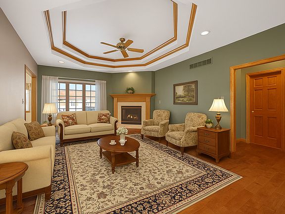 Finished basementAbove-ground heated poolGranite wet barCovered front porchManicured lawnGame roomFormal dining room