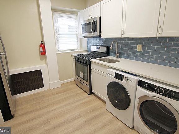 Plenty of on-street parkingCompact washer and dryerGorgeous tile workLovely tiled backsplashCustom white cabinetrySpacious kitchenStainless steel appliances