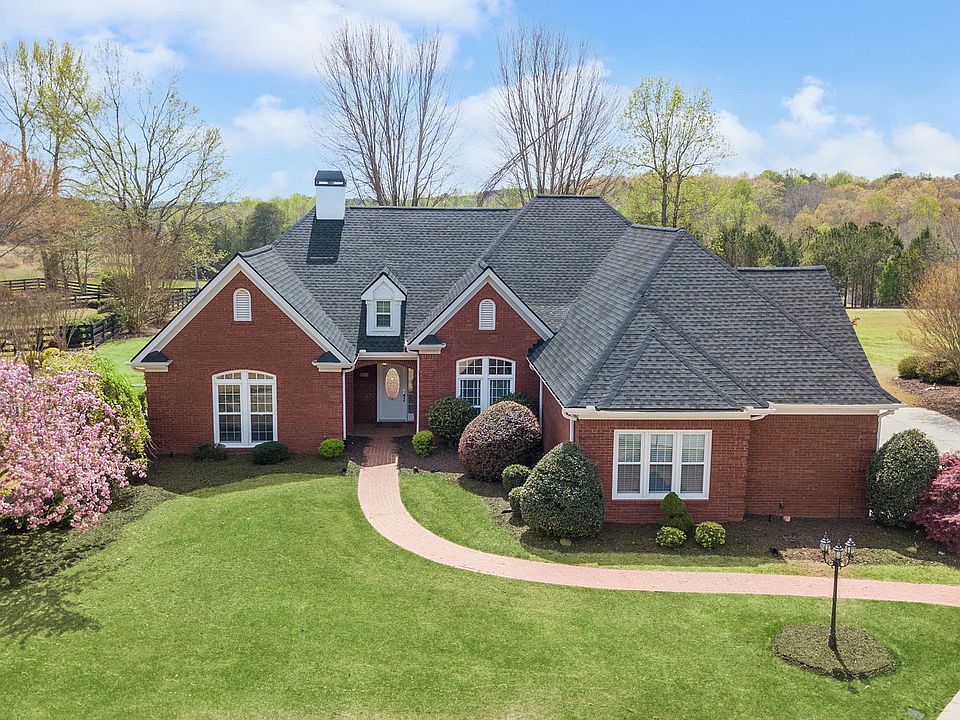 This stunning single-story brick ranch home offers sweeping views of the golf course and promises to be your ideal retreat. Nestled on nearly three-quarters of an acre in the highly desirable Gold Creek Subdivision, the property provides both a peaceful setting and convenient access to downtown Dawsonville and Dahlonega. Inside, the home is filled with natural light and features soaring ceilings over 10 feet high. The thoughtfully designed layout includes a galley kitchen with a breakfast room that flows seamlessly into the family room, complete with a cozy gas fireplace. A formal dining room and separate laundry room add to the home's functionality. The expansive owner's suite is a true haven, showcasing a recently updated en-suite bathroom with a spacious glass shower, jetted tub, dual vanities, and walk-in closets. Two additional bedrooms, each with walk-in closets, share a Jack and Jill bathroom, while a dedicated office provides flexibility to serve as a fourth bedroom if desired. A versatile upstairs flex room, accessible through the oversized three-car garage, offers abundant storage and endless possibilities. One of the home's most captivating features is the exquisite sunroom, perfect for relaxing while enjoying the picturesque views. Outdoors, multiple patios and generous green space create ideal areas for entertaining or unwinding with family and friends. Recent updates, including fresh interior paint, a brand-new roof, and the addition of a Generac generator, make this home truly move-in ready. With its blend of comfort, elegance, and practicality, this property offers the rare chance to own a slice of paradise in one of the area's most sought-after communities.