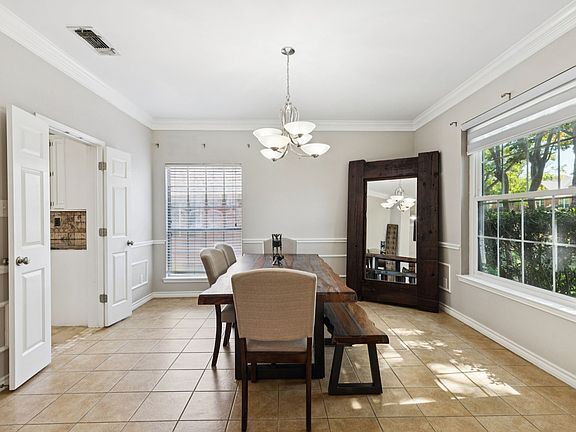 This stunning Highland Village home welcomes you with a grand front entry featuring soaring vaulted ceilings and a striking palladium window. Elegant trim and crown molding carry throughout the formal dining and living areas, adding timeless charm.