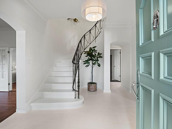 Situated in prime Little Holmby, this historic home is adorned with much of its ornate 1936 architecture, while tastefully updated to offer the conveniences of modern-living. Lush green flowering foliage frames the Cote d'Azur coral colored exterior and the crescent moon brick lined gated private drive. The entrance foyer welcomes guests with dramatic views of the ivory sea-shell shape staircase garnished with winding blacksmithed wrought iron. This entryway also gifts views of the expansive living room's woodburning fireplace and the sparkling crystal chandelier of the formal dining parlor. The chef's delight eat-in kitchen is lavishly dressed in bright Calacatta Borghese marble and high-end stainless appliances. Convenient access to the outdoor kitchenette with BBQ, and herb garden boxes is a cook's dream. Cozy up with a book next to the clubroom fireplace aside the walnut, floor-to-ceiling roller-ladder bookshelves. Or deliver the ultimate entertaining experience when opening the clubroom's double French doors to the covered heated patio, turquois blue pool, tranquil fountain and luxurious resort-like flower gardens. The 3 sunny spacious BRs upstairs include a primary suite w/ fireplace, 2 walk-in closets, balcony overlooking the expansive backyard and 2 large junior BRs w/ ensuites down a terraced hallway. 4th guest ensuite BR is located on the ground floor. An impressive bonus 400 sf finished backhouse presents the opportunity for an at-home-office, rec-room, studio, or entertainment space. This sunny home has abundant windows, beautiful moldings, wainscoting, Italian tile/stone, hardwood floors, and so much more. With close proximity to Westwood Village. UCLA, Warner Ave Elementary School and Century City, this home is a rare LA gem!