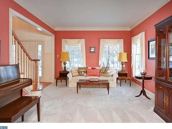 Unique setting for this custom colonial in sought after Downingtown East School District. With 2.3 acres of private woodlands this 4 bedroom home allows you to relax on the front porch and watch the small stream meander by or entertain on the large deck overlooking the woods. The wide hardwood foyer welcomes you into the center hall flanked by a large formal dining room which is great for the holidays with the formal living room flowing into the large family room with a wood burning fireplace. The spacious kitchen has an oversized island and bright breakfast area. Plenty of cabinets and counter space for all your baking needs and a large pantry. Laundry room and laundry chute is on the first floor. The second floor has a wonderful master suite with walk-in closet 3 large bedrooms and hall bath. The second floor also boasts an office over the 3 car garage with a powder room and separate stairs from the back door entrance, perfect for having clients stop in but not have to come through your home. Minutes to shopping, schools, major roads and the turnpike, this is a one of a kind home and beautiful location for that special place we all would like to have.