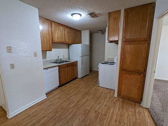 This 2 bedroom unit features an open concept living, dining and kitchen area with vinyl plank flooring and full size washer and dryer connections. The bedrooms are split and both have new carpet. The one bathroom has a large vanity and tub shower combo. The unit has central heat and AC. 1 pet allowed with a $300 pet deposit. Pet must be 25lbs or smaller due to size of unit. Tenant is responsible for all utilities. Unit has 2 dedicated parking spaces in attached parking area. Landlord is not accepting housing at this time. Min credit score of 585 required, income must be at least 3x rent and applicants must have clean rental history.