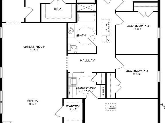 READY NOW- The "Allagash" floorplan includes 4 bedrooms and 2 bathrooms. A covered porch leads directly into the cozy foyer, which opens to the kitchen, dining and great room. This functional floor plan offers a seamless flow for entertaining or every day life. The laundry room is accessible for the garage, making it a breeze to keep the house clean. It is also located near the front of the house for convenience. The primary retreat is located in the back of the house for complete privacy. Featuring a large closet, double-vanity and Vinyl luxury floor tile, the primary creates a luxurious escape. The other three bedrooms complete the opposite side of the house and share a centrally located bathroom. Lot 33, Phase 1B