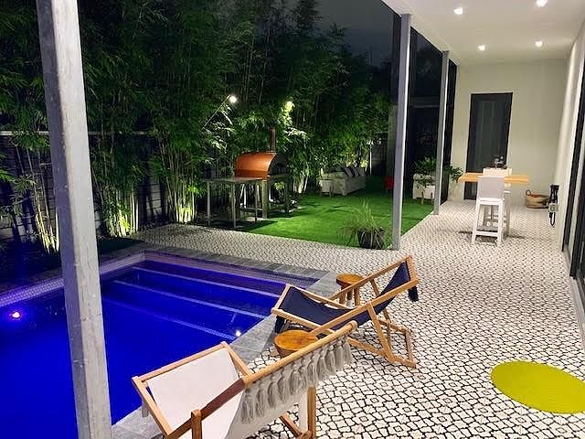 ONE OF A KIND. Modern & stylish attached single-family home in Tarpon River featuring 4 bedrooms and 4 bathrooms, a saltwater pool, a large side patio for entertaining, a backyard, a 2-car garage, separate living quarters, and an extra-large driveway. The property was built with every detail in mind. As you enter through the beautiful courtyard, you will feel at home and relax. Very well equipped to enjoy Florida at its best, featuring an Italian Pizza Oven, infrared sauna, a 14-foot kitchen island & a designer kitchen by Italkraft. The fourth bedroom/ full bathroom is downstairs (currently used as an office/gym). Extra-large bedrooms, master closet/master bath make this unbelievable property come to life. Available fully furnished or unfurnished. Can be shown starting October 1st.
