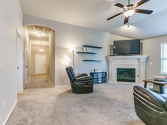 Welcome to this beautiful 3 Bed, 2 Bath home in the heart of Moore, OK. This home has a great size living room with corner fireplace. Upgrades include: sprinkler system, storm shelter, laundry room and a composite deck in the backyard. The master suite has a walk around closet and a dual sink vanity. Apple Valley Neighborhood offers a park and splash pad. Conveniently located with easy access to I-35, shopping, restaurants and more. Welcome home!