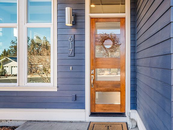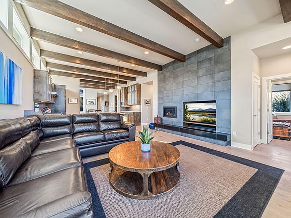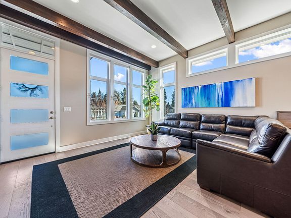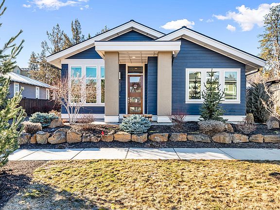 This open, light-filled, single-level home is nestled on a quiet, private street near Bend's most sought-after amenities, including Old Mill shopping, the Deschutes River, local parks, restaurants, and outdoor recreation. With stunning eleven-foot exposed beam ceilings and oversized windows, the home invites abundant natural light throughout. The efficient kitchen features a pantry, extra prep area, and a spacious center island with counter-height seating, ideal for entertaining. The front bedroom's design provides flexibility, perfect for a home office. The primary suite, tucked at the back of the home, offers a generous walk-in closet. Enjoy the covered back patio, plumbed for a gas grill and firepit, ensuring year-round outdoor living with added privacy. The oversized garage offers plenty of extra storage and a dedicated shop/gear area, making this the ideal blend of comfort and functionality.