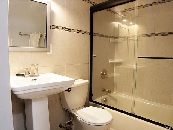 Contemporary finishesPlenty of natural lightingBright and airy spaceNewly renovated bathroomSleek cabinetryGlass shower doorAmple counter space