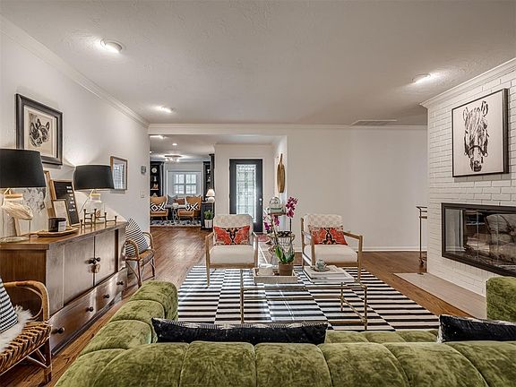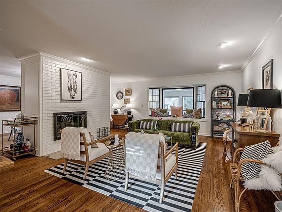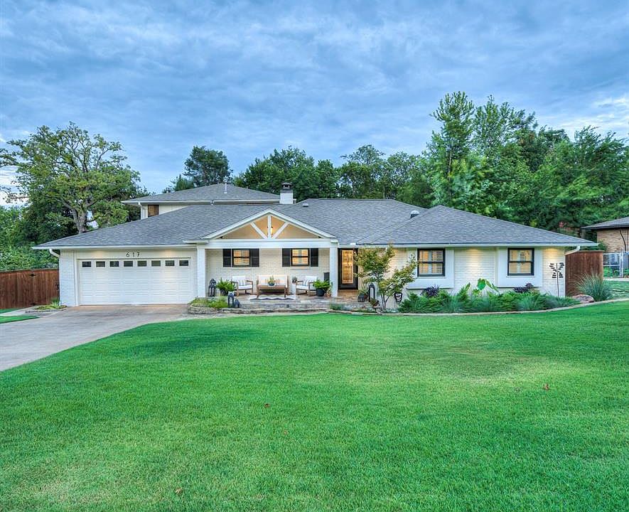 Welcome to 617 Timber Lane, located in Clegern, Edmond's premier historic neighborhood- surrounded by walking & biking trails, parks (Hafer, Fink & Stephenson), with easy walking access to Downtown Edmond & all of it's activities, including the Arts Festival, Heard on Hurd, shopping, restaurants, the public library, ETC! The original home was built in 1961, while the majority of the home's square footage was completed in 2011, by Brent Gibson & Corbin Roberts. The entire home has now been completely remodeled & renovated, while keeping the original mid-Century charm, including a unique dual fireplace in the heart of the home. With custom cabinetry throughout, there is abundant storage, including a 346 sq ft storage room (not included in square footage). The floorplan has endless possibilities- 3 living, 2 dining, 4 beds & 3.5 baths. The original primary bed is downstairs, the perfect mother in law plan. The 4th bed has a walk-in closet & is currently used as a play space & office. The media room features a small kitchenette with fridge & is the perfect spot for a movie night. The luxurious primary suite includes 2 walk in closets with many built ins & shelves, laundry room access, his & hers toilets, walk in shower, large tub, double vanities, and a generous bedroom with room for an additional living space, as well as access to the balcony and spiral staircase looking over the beautiful backyard. The serene back patio and deck space are the perfect place to entertain & relax, with mature trees surrounding the property & a new steel post wood privacy fence, allowing for a private oasis. Other unique features include a library with custom built-ins, a basement with electricity, multiple window seats, mud room with brick floors & custom cabinetry. Custom plantation shutters & window treatments, all new lighting & plumbing fixtures, cabinet hardware, high end door knobs, etc. You won't want to miss the opportunity to live on this idyllic, sought after street!