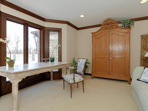 Truly exceptional custom built home on 7+ gorgeous acres - the former site of the Lazarus hunting cabin & rich in Indian history. A spacious home with a separate wing for live in family/au pair, beautiful finishes throughout, separate office space & changing room/bath adjoin the large RV garage which overlooks in-ground pool. Surrounded by mature trees with a stream.