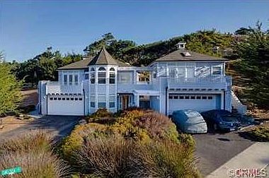 Come discover amazing views all the way to Piedras Blancas lighthouse and whitewater views of Leffingwell from this elegant, Cambria home. From the curved staircase in the entry to the built-ins in the step down living room, this home will not disappoint. Entertain upstairs while the kids are playing downstairs in the family room. Located on a double culdesac and on a corner lot. Living room, kitchen, dining and master on second floor with 2 bedrooms, laundry & family rooms located on the first. Laundry chute from Master Suite to laundry room below. Laundry room features a wash sink, counterspace and an extra refrigerator. Open french doors to patios downstairs or upstairs exit onto 3 separate slate tiled decks. New exterior paint and selected interior areas. Separate guest quarters (approx. 21.5 x 21.5 interior measurements)located over 2nd garage - features a nice kitchen, bath and it's own deck with ocean views.