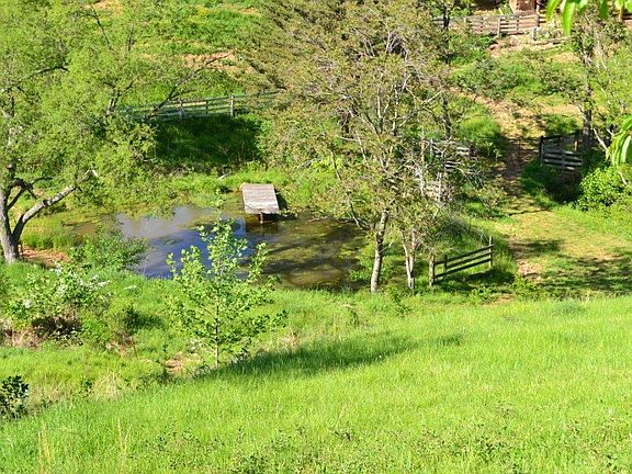 This unique 11 acres with downtown views offers a great building site and ideal land to graze horses, cattle or animals. Includes a beautiful 1bed 1bath cottage with stone floors, Poplar kitchen cabinets, and island. Ideal rental property. Barn with horse stalls, covered equipment/vehicle sheds and a small pond. This is a rare opportunity to own land close to town for horses.