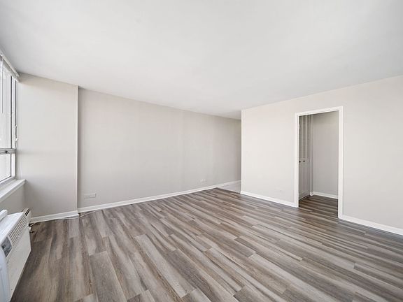 Stunning lake and city views from the 24th floor of this updated studio. The unit begins with a hallway featuring new vinyl flooring and a large closet. This leads into an expansive living area with plenty of room for dining and sleeping, complemented by a newer wall A/C unit. The refreshed kitchen boasts white cabinets, a stainless fridge, and an electric range. A second hallway leads to the bathroom and even more storage space. This north-facing studio offers some of the best lake views in the building. Building amenities include an on-site engineer, 24-hour doorman, exercise room, party room, and a picturesque rooftop sundeck. Granville Beach is right outside your door, and you are adjacent to Berger Park. Enjoy being minutes from Loyola, Northwestern, restaurants, shopping, and transportation, with the Red Line just nearby. Monthly assessment includes heat and cable. There is currently a waitlist for parking. Pets are allowed, and the building is investor-friendly with no rental cap.