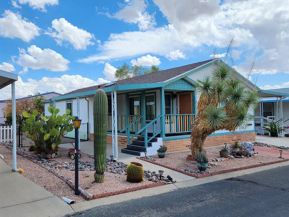 Located in a welcoming 55+ mobile home park on Tucson's southwest side, this home offers comfort, convenience, and community. Residents enjoy access to a clubhouse with social activities like bingo and potlucks, plus a community swimming pool for relaxation.Perfectly situated near shopping, groceries, Casino Del Sol, San Xavier Church, a movie theater, Walmart, Home Depot, Lowe's, and a wide variety of restaurants--including Little Mexico and Guadalajara Mexican Food--this home places everything you need within minutes. With I-19 just 10 minutes away, downtown Tucson is easily accessible. New roof and new Andersen windows throughout, Paid-off solar system for energy savings, Engineer Certified for peace of mind, Dining area with electric shades, Great neighbors and a friendly community.