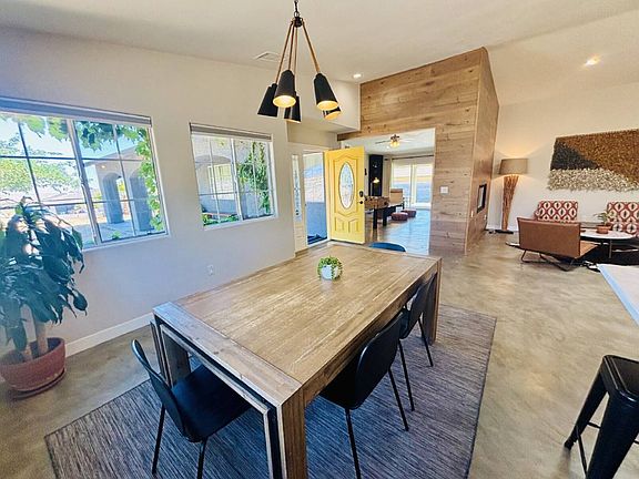 Beautiful and well maintained home in South Joshua Tree. This is a spacious 3 bdrm, 2 ba with an open kitchen, living room, dining area and an addition common room that can serve as a family room or office. Vaulted ceilings, skylight and big bright windows create open spaces full of natural light. The master bedroom has a walk in closet, large beautiful bathroom and double sliding glass doors that exit to the shady backyard patio. There is also a dedicated laundry room, attached 2 car garage, fenced backyard, lovely, easy to maintain landscaping, shaded breezeway leading to the front door and hammock structures to enjoy in the backyard. House will be rented with refrigerator, stove, oven, dishwasher, garbage disposal, washer and dryer. Central air for heating and cooling plus a fireplace embedded in the wall between the living and family room. This house is available furnished (at $2,800/month) or unfurnished ($2,600/month) on a 12 month lease. Tenant pays utilities (water, propane, electric, internet and $40/month for trash pick up). Shorter leases are negotiable. Dogs will be considered with petscreening. Dishwasher, Disposal, Ice Maker, Microwave, Oven, Refrigerator, Concrete, Family Room, Great Room, Laundry Room, Living Room, Air Conditioning, Blinds, Ceiling Fan, Double Pane Windows, Drapes, Dryer, Fireplace, Furnished, Garage, Vaulted Ceilings, Washer, Fence, Patio, Freezer & Pet Friendly.