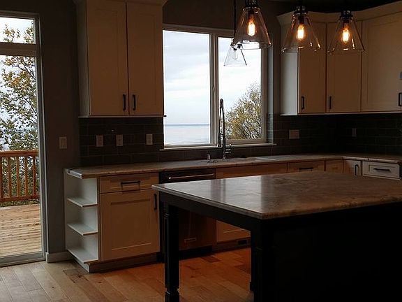 Amazing views of city lights, inlet, mountains and the northern lights when they are out! Upstairs: Large master bedroom with master bath that has 2 separate vanities, freestanding tub with floor mounted tub filler, walk-in closet, large separate shower & water closet. 2 very large bedrooms with large closets, a full bath, laundry room, reading nook, & linen closet. Main floor: Spacious kitchen has marble counter on white shaker cabinets, large island with black cabinet & quartzite counter, 2 ovens, 6 burner Bluestar range, walk-in pantry, & KitchenAid appliances. Large main floor office could be 4th bedroom, Powder room, Mud room with closet and bench connects to garage and front entrance area. Good sized dining room currently has 9 ft. table that fits the space comfortably. Living room has gas fireplace with arctic white stacked stone and custom built in shelves done with cherry wood & stained black which compliments the black and white kitchen. Very large deck off the kitchen-dining room makes access to the kitchen while grilling easy. Walk-out Basement: Recently finished full basement includes 5th bedroom which has inlet and city views, a full bathroom, another room which could be used as an office, theater, guest or computer room, and a spacious second living room/game room. Through the sliding glass doors out of the basement there is a second very large deck (even bigger than the upper deck!). The lower deck was built with extra support needed for a large hot tub. Crawl space access is in the basement and gives you about 1400 sf of additional storage space. Garage: Extra large garage 1,481sf easily fits 4 cars, or more (parking tandem), and all your gear or storage items. One stall has a tall door for the camper/motor home. Need more room to park?! Not to worry because there is also a very large parking pad. Outside: Over 1.6 acres about half of that has been cleared. Trucks and trucks and trucks of fill dirt were brought in to make the hillside less steep and make the yard much more usable. The result is a beautiful front and back lawn. Backyard is fenced with 6 ft. tall black vinyl chain link fencing which has 3 gates (1 on each side of the house and 1 at the very back of the yard leading to the wooded area of the property. Backyard also has a good sized fire pit. There is also a dog run that is easily accessible from the main floor deck so all you need to do is let the dogs out the upstairs back door and they can head down to the dog run. Dog run has a gate to let the dogs into the larger fenced yard when you want.