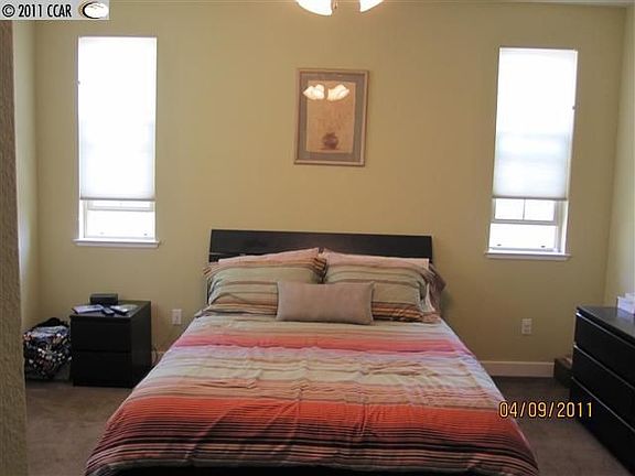 Stainless steel stove and microwave. Living rooom wired for surround sound. Upgraded granite counter & maple wood cabinets. Upgraded carpet & padding. Custom paint on interior. Two master bedrooms with walk-in closets. Custom tiled shower in master bath. Approx 300 sq ft of storage space. Alarm sys.
