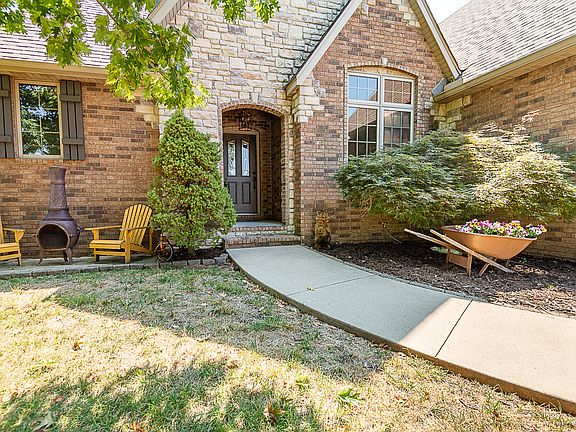 Aggressively priced two-story brick and stone home located in prestigious Rivercut has something to offer for any buyer! Featuring over 3300 sq.ft. of living space, this 5 bedroom, 3 bath home was designed with flexibility and top of the line quality. True hardwood floors, 6 panel doors, custom trim, all in a well-constructed home make this home stand out. The main level has a very open design with formal dining open to the huge living room that includes vaulted ceilings and a gas fireplace. The formal dining is currently used as a sitting area perfect for entertaining. The oversized kitchen has amazing storage space with custom cabinetry and a separate pantry area. Granite countertops, stainless steel appliances (inc. a gas stove) and extra bar area make this a great kitchen to cook in and still be a part of the conversation. The bedrooms are split with a full bath off the kitchen area along with two large guest bedrooms with walk-in closets (one with a storm shelter access to the crawlspace). The master suite is off the front entry and includes step ceilings, double cultured marble vanities, and separate tub and walk-in tiled shower. The upstairs has 2 bedrooms and another bath, perfect for a private office or kids retreat. One of the bedrooms is perfect for a 2nd living area or toy room for the kids. It also has extra storage space in the walk-in attic. Outside is truly an oasis made for entertaining with a nearly half-acre manicured yard featuring a covered patio and an open composite deck as well. Updates include a 4 year old roof, new fixtures and lights, a new water heater, and even direct drive garage door openers! The subdivision has excellent amenities with a pool, clubhouse, trash service, and even a security service. The 18 hole golf course is beautiful and membership is optional. This home has such a great floorplan that can adapt to your needs and the award winning Kickapoo schools and great neighborhood make it an exceptional buy!