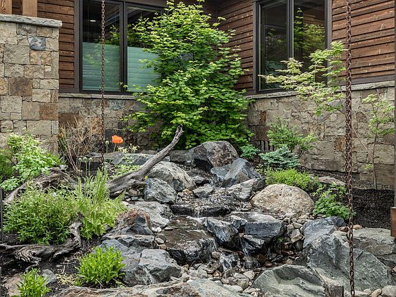 Casually elegant Broken Top home in an especially peaceful & private location along the first fairway. Cascading waterfall at front entry leads to interiors combining a mountain chalet influence with a fresh contemporary aesthetic. Crystal chandeliers paired w/rustic beams & stone encased fireplace in great room enhance landscape & fairway views. Kitchen showcases top-of-the line Miele appliances, an expansive island/brkfst bar, Butler's pantry w/ wine & professional sized refrigerators & dining area overlooking front waterfall. Outdoor kitchen on heated patio, overlooking backyard, is perfect venue for al fresco entertaining. Serene main level primary suite, w/hot-tub patio, luxurious bath w/ freestanding tub, marble tiled shower & sitting room (or Pilates studio, study, 2nd walk-in closet). Main level also encompasses private office & a cozy family room w/ fireplace & access to backyard. Second level offers a second primary suite, full en-suite guest room & loft w/ built-in daybed.