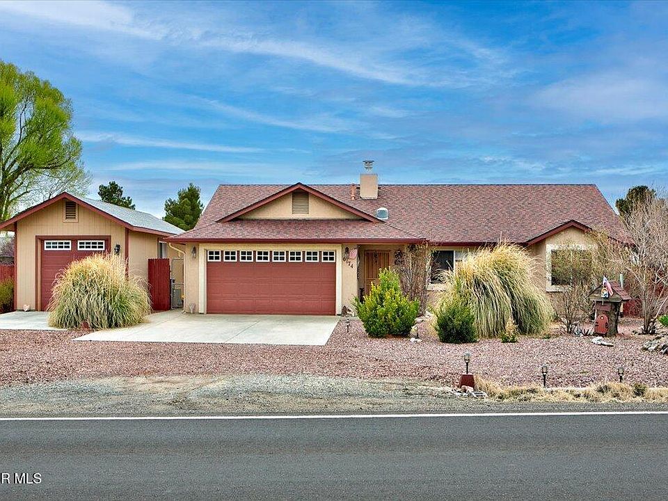 Welcome to 6174 N Viewpoint Dr in beautiful Prescott Valley! This charming home offers a warm and inviting atmosphere with 3 spacious bedrooms and 2 bath. The layout is both functional and comfortable, perfect for families or anyone looking to enjoy the best of Arizona living. Step inside to find a bright and airy living room. The kitchen provides plenty of counter space and cabinetry. The home sits on a .25 acre lot offering a spacious backyard with endless possibilities for outdoor entertaining, gardening, or simply enjoying the Arizona sun. In addition to the attached 2 car garage, this property also feattures a detached 3rd-car garage, A garden shed offers additional space for tools, while the dedicated she-shed or man cave provides a cozy retreat for hobbies or