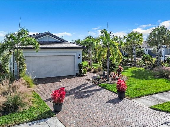 CORNER LOT - DESIGNER SELECTIONS- IMPACT GLASS- 4' GARAGE EXTENSION - ONLY 3 YEARS OLD Almost brand new Contour floor plan home in section of Del Webb with no new construction nearby. In a gated over 55+ community, this corner home features 21" porcelain tile throughout, quartz countertops, 42" cabinets with soft close and pull out shelves. Immaculately kept and better than brand new. Comes with all window treatments, ceiling fans, and pendant lights, epoxy on garage floor and 8' doors throughout. Corner lot is very private and extra green space on side and back make it unique. Room for pool. No fences allowed. This very active 55+ community, features pickleball, tennis, bocce ball, golf simulator, lap pool, resort pool, steam room, sauna, billiards, community room, fitness, library, optional golf and more! Situated in town of Ave Maria you can bike, walk, or golf cart into town for restaurants, shopping, dining, groceries, and more. As we say: "Ave Maria ~ Once you get here you "get it." TM