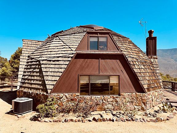 Own an iconic geodesic dome home in Pinyon Crest, just 20 minutes from El Paseo in Palm Desert. Set on 1.03 acres with stunning mountain views, this classic R. Buckminster Fuller design features a natural rock fireplace, custom stained glass, and abundant natural light. Enjoy a fenced yard, deck, spa, and ample space for outdoor living and development potential. The HOA maintains community-owned wells, providing fresh, clean water to all residents, graded roads, mailboxes and locking back gates for security and privacy. Pinyon Crest is a national monument and wildlife habitat, 10-20 cooler than the desert cities below. Home is being sold ''as-is, where-is'' and priced to sell--an outstanding opportunity to purchase in this unique mountain community.