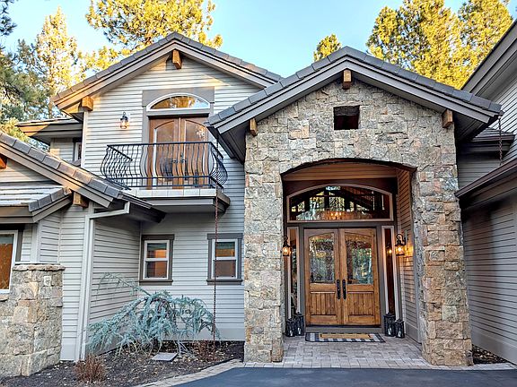 This thoughtfully designed home on Tam McArthur Loop in Broken Top features elegant finishes, superior craftsmanship, and attention to detail. The great room offers a warm and open environment, with a floor-to-ceiling stone fireplace and a wall of windows that brings the outside in. The dining area flows seamlessly into a chef's-grade kitchen and charming wine room with a Dutch door, and original brick reclaimed from The Old Mill. The main level also includes a private guest suite, custom-crafted office, flex space, and 3 car garage. Upstairs, you'll find a bonus room with wet bar, two additional bedrooms, and the primary suite, featuring a quaint balcony and soaking tub. The covered paver patio with private, forested setting, is ideal for outdoor entertaining or gathering around the fire pit. Experience refined living in this timeless home and explore the exclusive amenities offered by the award-winning Broken Top golf course and community.