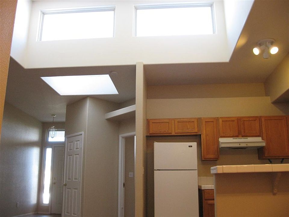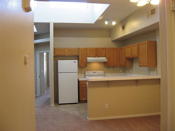 Northwest accessible and close to everything. $1000 rent, 1 story townhouse with 3 bedrooms, 2 full baths. 2 car garage with shelves and work bench. Tile in kitchen and bathrooms with new carpet in rest of house. New custom paint throughout. Large bright kitchen/family room/breakfast nook with large skylight. High ceiling throughout. Low maintenance front yard and enclosed courtyard, no back yard. Owner pays for trash and sewer. Tenant pays for power and water. There is no gas and no HOA. Middle school is right across the street. Best Buy and Walmart shopping center.