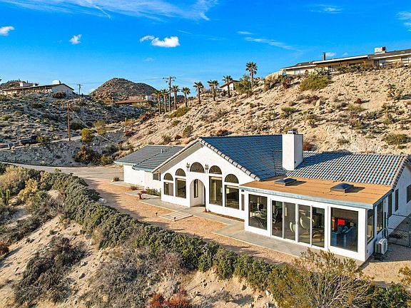 Experience the unique charm and rural character of this Yucca Valley home with amazing panoramic views. Welcome to Western Hills Estates! This vibrant community is enhanced by the beauty of the desert landscape offering a secluded hillside property that is perfect for star-gazing. Featuring a fully renovated 3 bedroom, 2 bathroom home, with over 2000 square feet of living space. This open floor plan concept has updated features throughout including beautiful ceramic flooring, baseboards, paint and new carpet in the bedrooms. The kitchen and bathrooms have been completely upgraded and enhanced with new cabinets, quartz countertops, hardware and appliances! The Master Bathroom suite offers a spa-like feel, including a tub where you can soak while viewing the beautiful desert skylines. Breathtaking and vibrant views fill the home with large floor to ceiling windows. Take advantage of working in the home office featuring spectacular 180 degree views. One of the beautiful features of this home is its location! BLM or Non developmental land is located behind this property, guaranteeing these picturesque views. Escape from SoCal's urban sprawl with easy access to the region's top attractions, including 10 minutes to famous Pappy & Harriet's, 20 minutes to Joshua Tree National Park, Palm Springs, and the Coachella Valley. Big Bear Mountain resorts are only a short drive away! Enhance your lifestyle with this truly idyllic home ready for you.