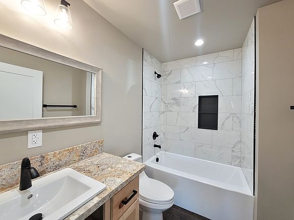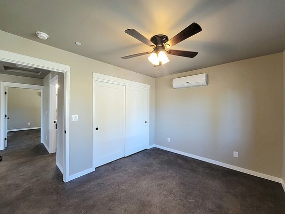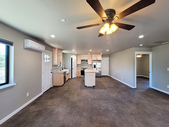 AVAILABLE NOW! Built in 2025! 2 Bedroom/1 Bath with a Garage and Solar Panels! There is a large open living space and modern stained and stamped concrete flooring throughout the unit. The kitchen has granite counters, a butcher block island, plenty of cabinet space and drawers, a pantry, a farmhouse sink, and matching stainless steel appliances. The bathroom has a granite counter vanity and an attractively tiled tub/shower. There are mini-splits and ceiling fans in both bedrooms and the living room, allowing you to control the temperature of each space to your liking. The garage is 30 feet long providing plenty of room for a vehicle as well as additional storage. Comes with a washer and dryer. The back yard is fully fenced. Awesome place to live!