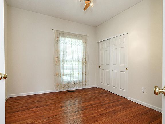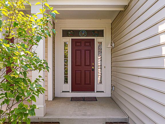 Welcome to this well cared for 3 bedroom, 2 and a half bath ranch home with front porch pond view, located in the quiet community of Village at Homestead! Upon entering, you'll be drawn in by the accents of stained glass above the front door and the immediate welcome of wood floors, which take you to through open concept living spaces. Living room has a wood-burning, fireplace, perfect for those winter months. Kitchen is complete with white appliances (refrigerator, gas range, dishwasher, and microwave), island for additional storage, a dedicated space for a dining table with a chandelier, and sliding doors leading to the backyard. Easy access laundry on the main floor. Gorgeous vaulted ceilings in the living spaces and owner's suite. All bedrooms have carpet for extra comfort. Owner's suite has a walk-in closet, as well as private bathroom with double vanity sink, standing shower, and soaking tub. An oversized office with a closet, which could easily be converted into a 4th bedroom, rounds out the first floor. Not only does the full basement have a half bathroom, but also unique features such as a full sauna and a steam shower/jetted tub combo next to the half bathroom (a $10,000 value if bought yourself)! Take some time to enjoy the outdoors on the paver patio, take in the surrounding greenery, and the close proximity to the community pond. Convenient 2 car attached garage. This home is truly an oasis you won't want to miss out on!