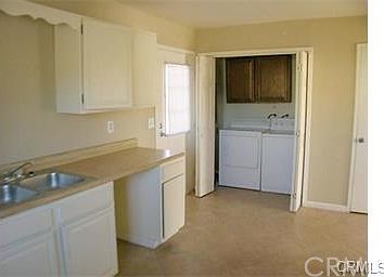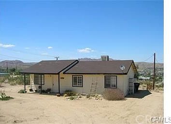 Cute little house with large landscaped yard. Split rail fencing. 960 square feet on .39 acre lot. Built 1982. Two bedrooms. One bath with entrances from hallway and master bedroom. Ceramic tile floors throughout. Includes fridge, electric stove, washer/dryer. Pets allowed with deposit on approval. Great views of Joshua Tree.