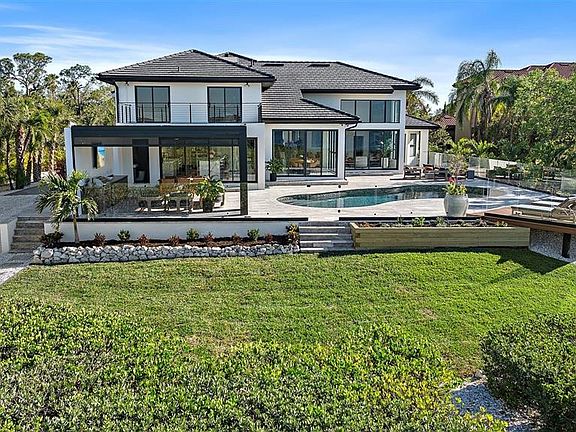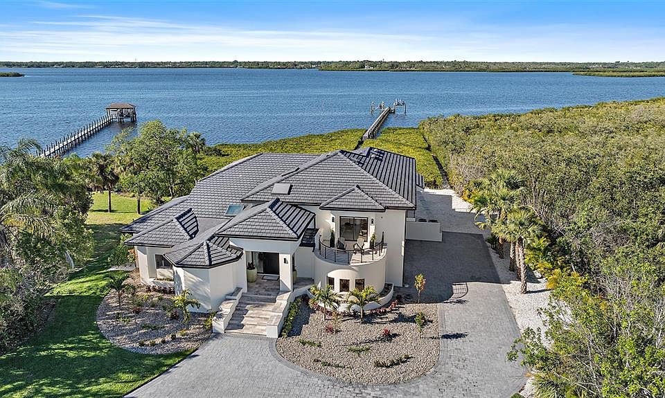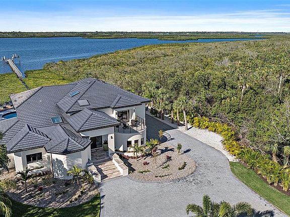 Ultra-Luxury Modern Waterfront Estate in Florida Step into a world of unparalleled luxury and serenity with this exquisitely reimagined waterfront estate, set on over 1.2 private acres. Designed by an internationally acclaimed architect, this masterpiece blends contemporary elegance with cutting-edge innovation, offering breathtaking water views and total privacy—with no neighbors to the east for over four miles. A grand 200+ foot circular driveway, newly paved and enveloped in $500,000 of lush landscaping and exterior upgrades, welcomes you to this hidden retreat. Hurricane-impact windows and a newly refinished concrete roof ensure both security and sleek modern aesthetics. House is very protected from hurricanes by the mangroves. During the last storms the house did not flood due to how the house is situated on the water. A Resort-Style Outdoor Oasis in a well maintained gated community! The completely transformed backyard is an entertainer’s dream. The refinished pool shimmers beside an extended floating sun deck, while a custom pergola with a motorized ceiling and retractable screening houses a high-end outdoor kitchen. A full bath and outdoor shower provides convenience, while a 10,000-pound boat lift accommodates vessels up to 28 feet. A private landing beach allows for effortless paddleboarding and kayaking, framed by manicured mangroves ensuring uninterrupted views. An Interior of Unmatched Elegance Inside, zero grout-line ceramic floors, soaring ceilings, and expansive hurricane-rated windows and sliders showcase sweeping water views. A custom-built, backlit feature wall, designed by master artisans, adds dramatic flair, while slimline AC vents and designer lighting enhance the modern aesthetic. The chef’s kitchen is a showstopper, boasting top-tier appliances, Italian cabinetry, and waterfall-edge quartz countertops. A hidden walk-in pantry with custom shelving elevates functionality. A Master Retreat of Pure Indulgence The primary suite has been reimagined as a private sanctuary, featuring an ultra-luxe spa-inspired bath with an oversized walk-in shower, custom his-and-hers closets, and LED-lit display cabinets for clothing, jewelry, and timepieces. Imported fixtures from across the globe complete this lavish retreat. A Bespoke Second Level Ascend the custom floating staircase, illuminated by soft LED lighting, to a serene balcony lounge overlooking the great room. Outfitted with built-in cabinetry and a coffee bar, it’s an idyllic space to unwind. All guest suites feature custom LED-lit closets and private balconies with stunning views. Reimagined for the Future Completely re-engineered, this estate boasts all-new electrical, plumbing, and HVAC systems, with raised ceilings and expanded square footage to enhance its grandeur. Never affected by storms, this home is as close to new construction as it gets—every inch meticulously curated for luxury, security, and modern elegance. This is Florida waterfront living at its absolute finest.