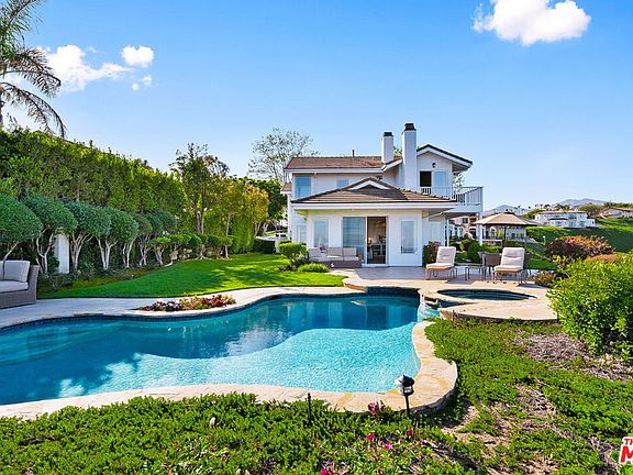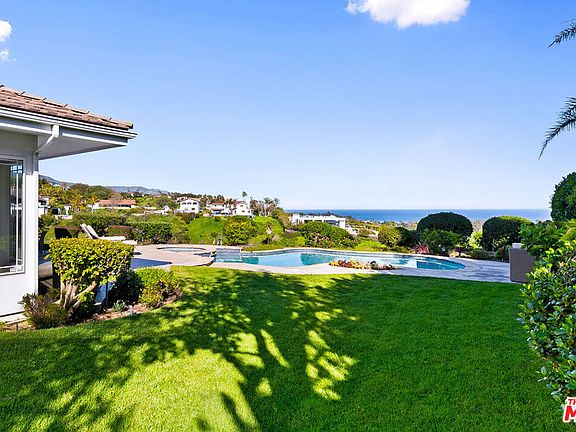 Behind gates on approximately two private acres, this five-bedroom Malibu home is positioned to capture wide-open views of the Pacific Ocean, city lights, and the Santa Monica Mountains. Spanning roughly 3,979 square feet, the property offers privacy, scale, and a calm, open layout designed for everyday living and entertaining. The main living area features vaulted, beamed ceilings and a fireplace, creating a strong central gathering space. The kitchen is anchored by a large island with integrated wine storage and opens directly to a casual dining area, keeping the layout functional and connected. The primary suite is set apart, with vaulted ceilings, an ocean-view balcony, walk-in closet, dual vanities, and a soaking tub. Four additional bedrooms provide flexibility for guests, family, or home offices. Outside, the grounds include landscaped lawns, a pool and spa, and multiple terraces to enjoy the views and setting. Located just minutes from Zuma Beach, Point Dume Village, Trancas Market, and Malibu's top hiking trails and surf breaks, the property offers true privacy without sacrificing convenience. A rare opportunity to experience space, views, and location, this is a home that needs to be seen in person.