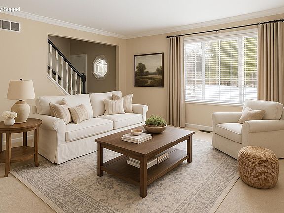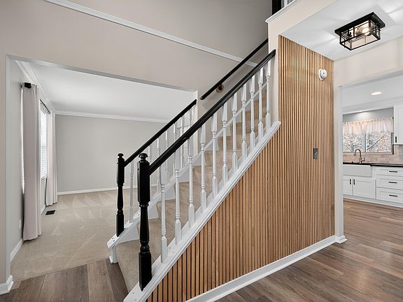 Just in time for the holidays! Imagine hosting family and friends in a beautifully renovated home that feels brand new yet warm and inviting. The open kitchen is the heart of the home, showcasing crisp shaker-style white cabinetry, solid-surface counters, a designer tile backsplash, farmhouse sink, and stainless-steel appliances including a vent hood, double ovens, and French door refrigerator—all included. Updated lighting and new LVP flooring create a fresh, modern feel throughout. Upstairs, the spacious primary suite offers a relaxing retreat with a custom accent wall, large bath, and generous closet space. You'll love the updated second-floor laundry—super cute, functional, and complete with washer and dryer. All bathrooms have been refreshed, and brand-new carpet will be installed throughout on 12/1. The front of the home is framed by mature landscaping, while the back opens to a wooded view that feels peaceful and secluded—like your own mountain chalet. Enjoy the scenery from the spacious deck, perfect for morning coffee, evening gatherings, or quiet weekends at home. Exterior freshly painted and truly move-in ready for the season!