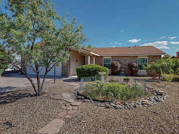 Welcome home. This updated and well maintained home, in the lovely ,Rivers edge 1 subdivision in Rio Rancho. Stunning, updated and open kitchen ,boasts quartz countertops, lovely cabinets ,an island and an oversized pantry. Step out back to your covered deck with a beautiful view of the Sandia Mountains.. The back yard is a gardeners dream! with a gardening shed, many fruit trees and raised garden beds. Store your belongings in the tuff shed! NO POLY PIPES! 2 year old roof, new windows in 2022, water heater 2018, and SOLAR! Many other updates. Buyer must qualify for and assume Sun run lease agreement for solar panels.