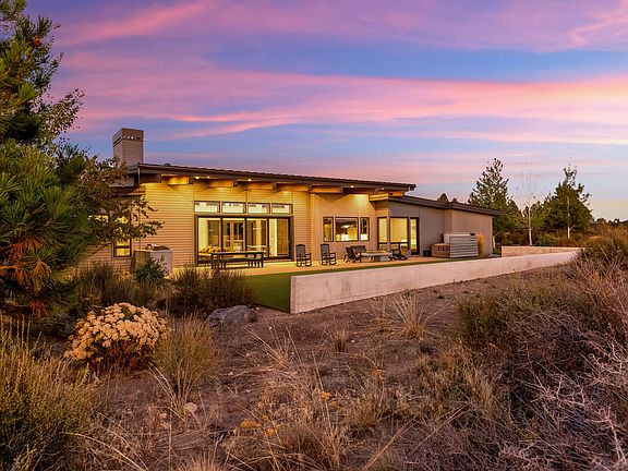 Experience single-level living at its finest in this Tetherow retreat, designed to showcase panoramic Cascade Mountain views. The great room features soaring ceilings, exposed beams, and a wall of sliders that blur the line between indoors and out. Modern statement pieces are balanced with warm wood accents, creating a timeless aesthetic throughout. The flexible floor plan includes three ensuite bedrooms, a private office, and a spacious media room. Outdoor living is at the forefront with a turf yard and oversized patio with outdoor kitchen for gatherings out back and a covered front patio for a quiet morning coffee as well. The primary suite and office/den are privately situated on one end of the home, while two guest suites and the media/bonus room occupy the opposite wing. With golf, trails, and skiing essentially out your door, this home offers a rare combination of luxury, versatility, and connection to the outdoors in one of Bend's most desirable communities.