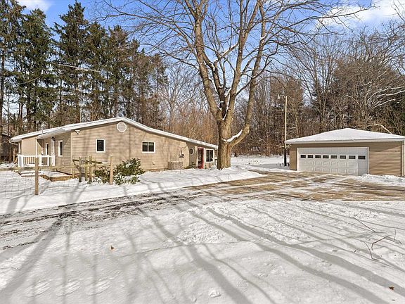 Tucked away off Oak Road in a peaceful rural setting, this 3-bedroom, 2-bath home offers a unique floor plan and meaningful upgrades throughout. A new roof installed in 2024 comes with a lifetime transferable warranty, providing long-term peace of mind. The four-season patio room features heated tile flooring, creating a comfortable space year-round and an ideal spot to enjoy views of nature and bird activity. The freshly remodeled primary bathroom offers a modern, updated finish and nicely complements the already well maintained interior. Recent water, well, and septic inspections have passed. Additionally, the crawl space is equipped with a vapor barrier that carries approximately 20 years remaining on a transferable warranty, further supporting the home’s overall condition and care. Outdoor living is enhanced by a deck that has been reinforced to accommodate a hot tub, and the detached 2½-stall garage includes a workshop, offering flexibility for storage, hobbies, or projects. A blend of rural privacy, functional updates, and versatile spaces makes this property a standout opportunity.