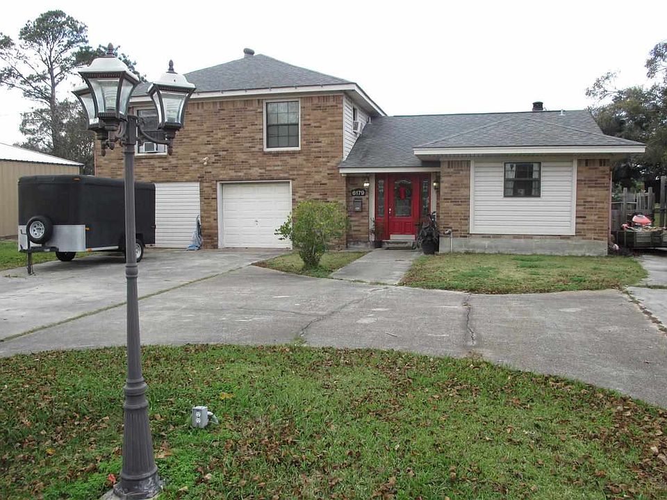 Great location in Groves. 1 & 1/2 story, all bedrooms up 1 bath upstairs and 1 bathroom downstairs. Beautiful large kitchen. Granite counter tops Work Island Eat in Bar Lots of new cabinets Large fenced lot. Corner fireplace in den. Open concept Den and Kitchen. French doors lead to extra large covered patio Large Circle in front of home. Perfect starter home
