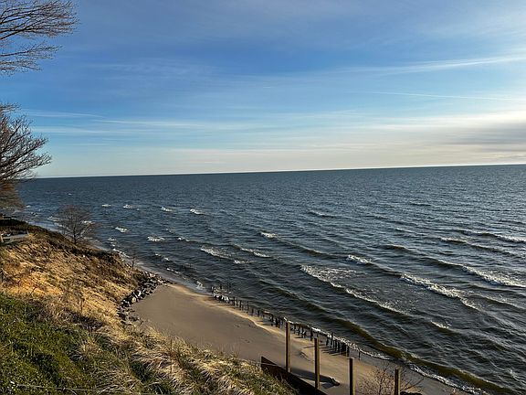 Enjoy sweeping views of Lake Michigan from almost every room in the house, including a spacious main-floor primary suite complete with a marble-tiled bathroom, heated floors, a jacuzzi, and French doors that open to stunning lake views. The open and airy main floor layout boasts high-end kitchen cabinets and appliances, a light-filled living room, and a formal dining room. Relax in the separate sitting area with a cozy fireplace or unwind in the amazing sunroom... Upstairs, find three additional bedrooms with large closets, a full bath with dual vanities, a steam shower, and a balcony overlooking the breathtaking lake. The lower level features an additional finished living room, laundry, utilities, and a heated garage.