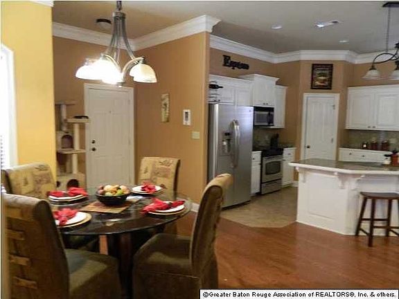 Looking for the perfect home in the perfect neighborhood, just minutes from Highland Road, Airline Hwy, Tiger Bend and the new Woman's Hospital; then you should view this one for yourself. Located on a quiet street with no thru traffic. Open floor plan, beautiful large working granite island and counter tops, stainless appliances with kitchen overlooing living and dining area. Kitchen has lots of storage and is great for everyday use and entertaining. Gorgeous wood flooring in living and dining areas. Spacious living room with built in cabinetry, gas log fireplace and a wonderful view of the patio area. Master bedroom suite has everything you could ever ask for a spacious bedroom, a large bathroom with a double vanity, whirlpool tub, stand-alone shower and huge walk-in closet. Crown molding throughout. Large laundry area. Backyard features lovely patio with full wood privacy fence. One year Old Republic home warranty included. Immaculate well cared for home is a must see. Schedule your private showing today.