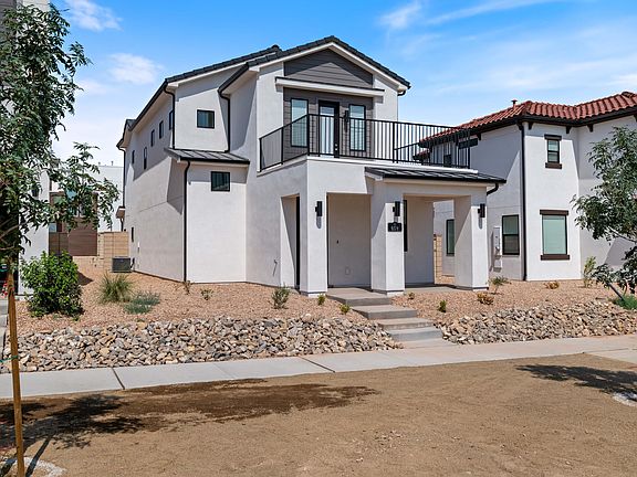 Where the magic of desert living meets all the perks you didn't know you needed. Picture yourself greeting neighbors from the covered front porch, then slipping out the side door to a covered patio and turf yard that never needs mowing. Inside, sturdy 2×6 walls frame epoxy-coated garage floors, faux-wood blinds, and soft-close drawers that whisper ''quality.'' The primary suite's balcony is practically begging for morning coffee with a view. When it's time to play, the community pool, pickleball court, park, and playground are right nearby. CAM and internet are included, so you can spend less time on upkeep and more time on R&R. Need to escape? I-15 and Southern Parkway are practically your driveway, putting all of St. George's shops, trails, and new hotspots within easy reach.