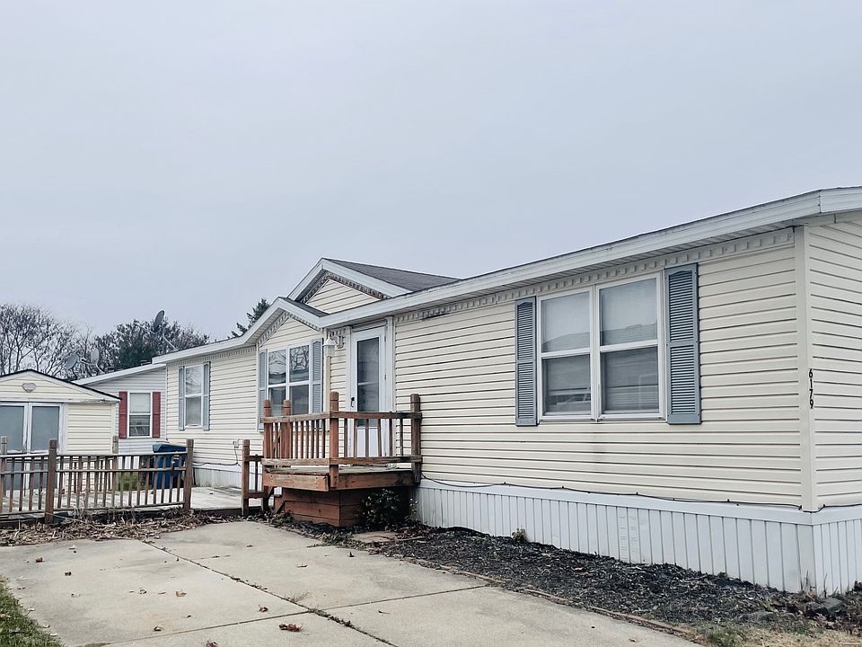 3 bedroom / 2 bath - Cull de sac lot ~ Deck in front ~ Open living room with large window bringing in the natural light ~ Separate dining area off living room leading into the kitchen ~ Kitchen with stove, fridge, microwave, freezer and dishwasher- has plenty of built in cabinet space.~ Primary ensuite bedroom with closet space ~ Primary bath with a bathtub/shower combo, and linen storage cabinet ~ Full size Washer and dryer in a separate laundry area ~ 2 additional bedrooms.~ Second bathroom with a tub ~ Extra outside storage with an 8 8 shed. No central AC unit. Community has on-site management - CURBSIDE trash removal - pool - fitness center - playground and beautiful clubhouse available to rent. THIS IS A SUN BROKERED HOME.