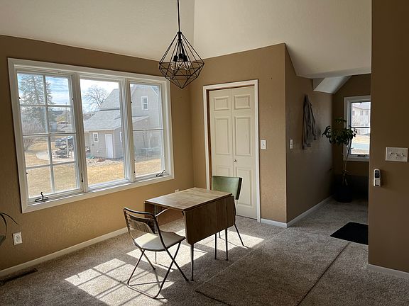 Floors are carpet, laminate and tile. Very nice clean approx 600 sq ft. Full kitchen including full size gas range, microwave, refrigerator and dishwasher. 7' breakfast bar. Washer & dryer outside of unit in garage. Tenant also allowed access to a shared sun room area and balcony. central air/ furnace.