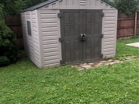 Move right in. Maintenance free exterior with fenced rear yard with new shed and concrete patio. Newer Furnace, Hot water tank and electrical panel. Newer flooring paint and lighting. First floor bedroom can easily become 2 bedrooms. First floor laundry with newer bathroom. Newer washer and dryer stays.