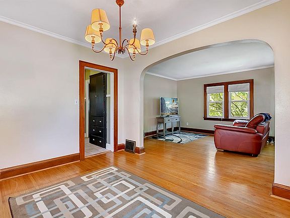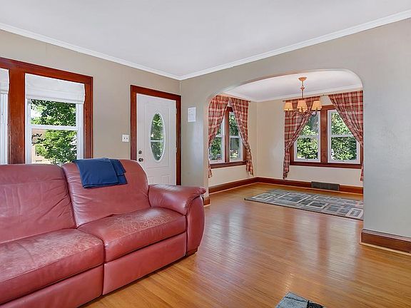 Charming home at an affordable price! Why pay rent when you can own your own home for less? Located on a large city lot, 1/3 acre with many trees, spacious backyard area great for yard games, plus a 2 stall detached garage. This adorable home features original hardwood floors & woodwork. Large dining room which is open to the living room. 2 bedrooms on the main level and a full bathroom. Lower level has a family room and extra room that could be used as a 3rd bedroom (needs an egress), craft room or office. Walking distance to downtown, Munsinger gardens & riverside walking trail. A great home at an affordable price.
