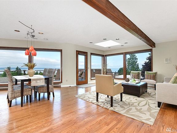 VIEW in the heart of the Edmonds Bowl. Enjoy panoramic view of the Sound and Mountains. Tucked away down private drive. Main floor with updated kitchen w/ stainless steel appliances. Full view from every room on main floor. Master with ensuite bath plus 1/2 bath on main. Lower level with 2 bed, 1 bath and large entertainment room. Hot tub and Central vac. Immaculate home close to all amenities in Edmonds. No -wire Views. Beautifully landscaped yard.