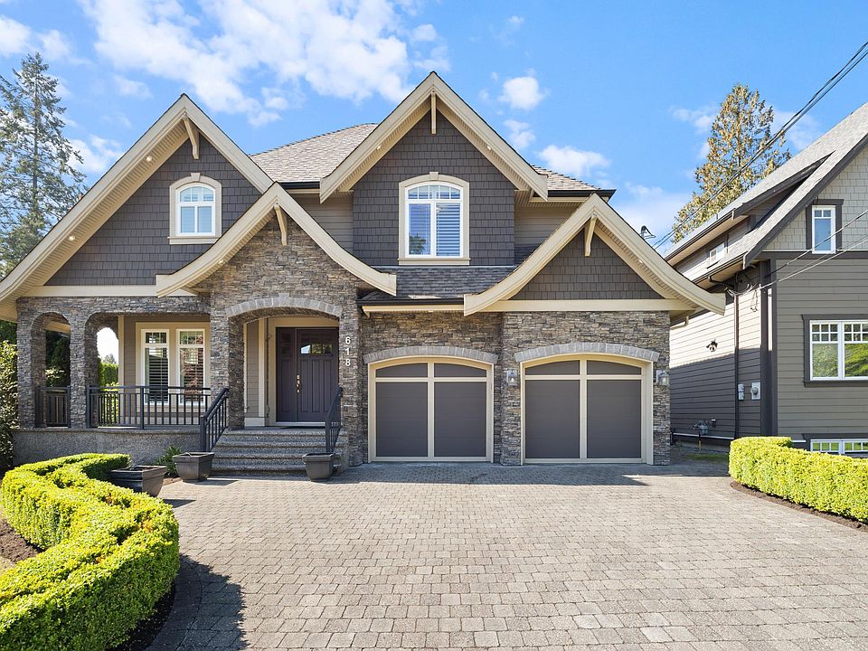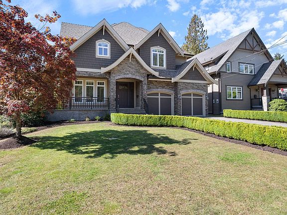 Central Coquitlam – Beautiful residential neighborhood. Custom-built by the original owner, this stunning 3-level open concept home offers 5,339 sq ft on an 11,625 sq ft lot with a massive private backyard framed by mature hedges. Exterior: Cedar, Stone, Hardie. Brazilian cherry hardwood & cabinetry on the main floor, 3 gas f/p (main, master, deck), pantry, built-in vacuum, security alarm, heat pump/AC. The basement is an entertainer’s dream with a media room, games room, gym, recreation room with bar, and guest room, plus a double attached garage, 4 open parking, single garage off lane, with a layout ideal for entertaining and family living. Steps to Chimo Pool, Poirier Sport Complex, close to parks, trail, Parkland Elementary (K-5), École Montgomery Middle (6-8) Centennial Secondary 9-12